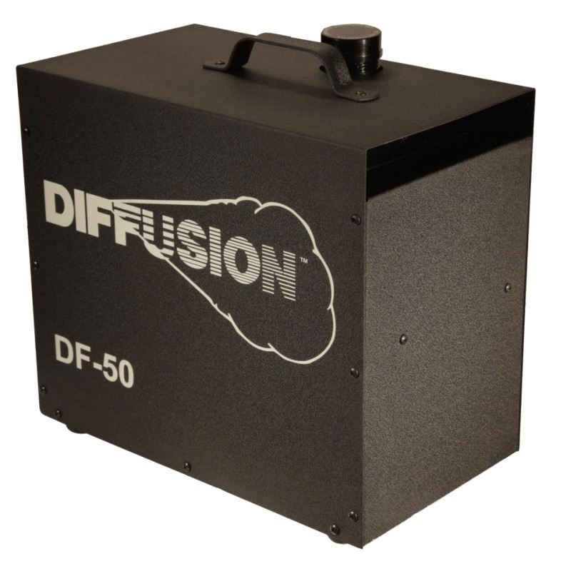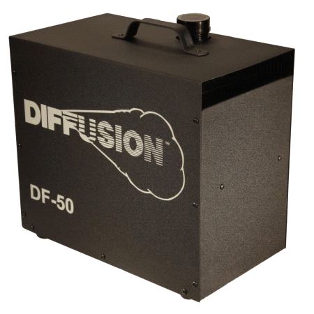 The DIFFUSION™ HAZER is the cleanest most cost effective atmospheric hazer. DIFFUSION™ haze is totally odorless and can only be detected visually. Safest, cleanest, and most efficient hazer for the entertainment industry. Provides safe and economical non-glycol haze with no heat. Fog Hang Time is over 3 hours in an enclosed space. No warm up period required. Haze fluid is odorless and leaves no residue when used properly. Holds 2 liters fluid, 35+ hours of runtime. Weighs only 35 lbs. 5 year warranty on compressor, CAL-OSHA tested for safety. Accessories