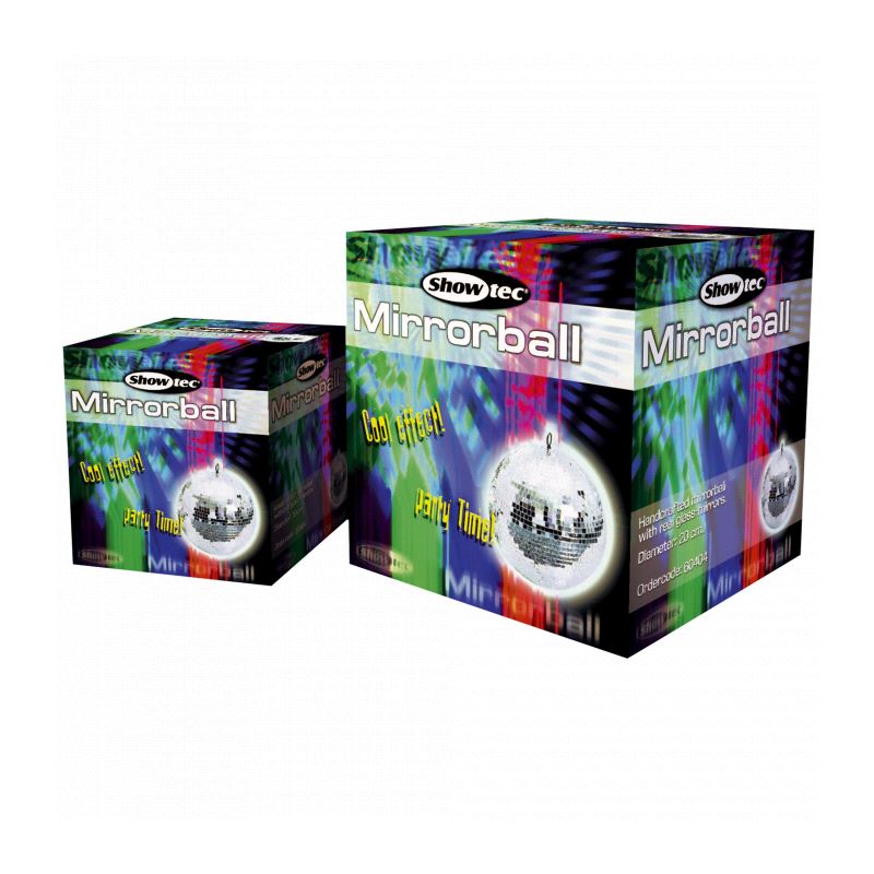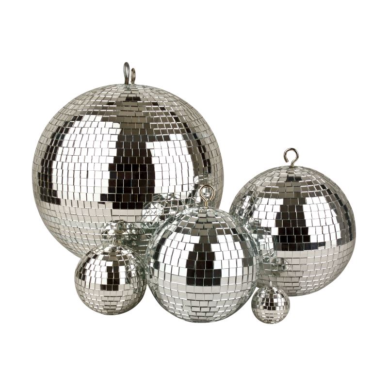 Helrund speilkule. Denne type speilkule kommer i to ulike varianter: Standard, med 10 mm speilelementer og Professional, med 5 mm speilelementer. Speilkuler fra Ø=30cm og oppover er utrustet med sikkerhetsøye. Leveres eksklusive motor.