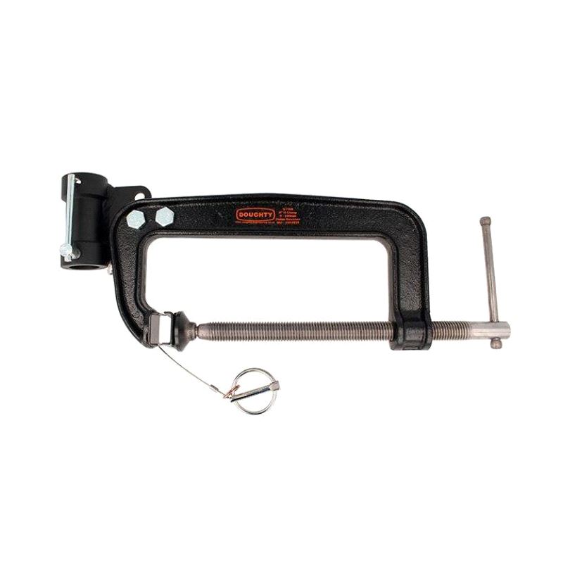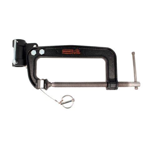A range of Heavy duty steel "G" Clamps fitted with dual position 29mm receiver, and modified jaws to clamp flat surfaces or round bars. Fitted with a lynch pin for secondary locking.