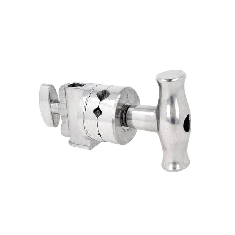 The 65mm standard Griphead features an offset 16mm receiver. The clamp plates are designed to accept 16, 12, 10 and 6 diameter pins/arms for flags, scrims etc. The conical clamping system enables items of irregular shape to be clamped securely.