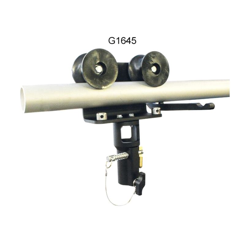 Manufactured in cast aluminium and steel, barrel trolleys are designed to roll along 48mm diameter tubes and are often used to suspend pantographs from fixed or rolling pipe grids and barrel hoists in TV studios. Each trolley has a 28mm TV spigot receiver factory fitted and braked or unbraked versions are available.