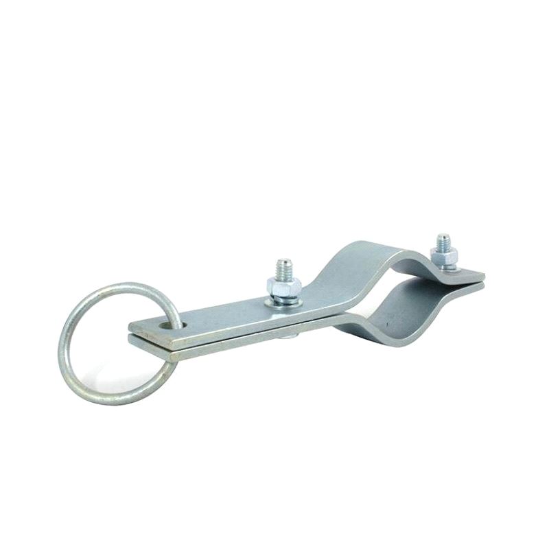 A steel hanging clamp with ring. Ideal to suspend a 38mm diameter tube by hemp or steel wire rope. Available in a zinc plated finish.