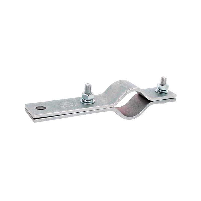 A steel hanging clamp with an 13mm hole designed to accept an M12 shackle. Ideal to suspend a 48mm tube by hemp or steel wire rope. Available in a zinc plated finish or powder painted black.