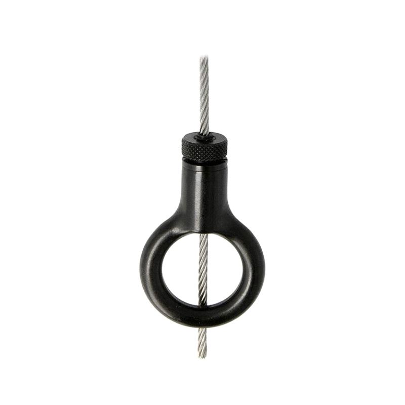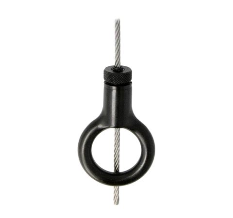 A Type 30SV Reutlinger Cable Holder fitted with a ring. Suitable for Ø2mm & Ø3mm steel wire rope these cable holders have been specifically designed for applications which demand compliance with BGV C1, such as stage productions, fair booths, etc.