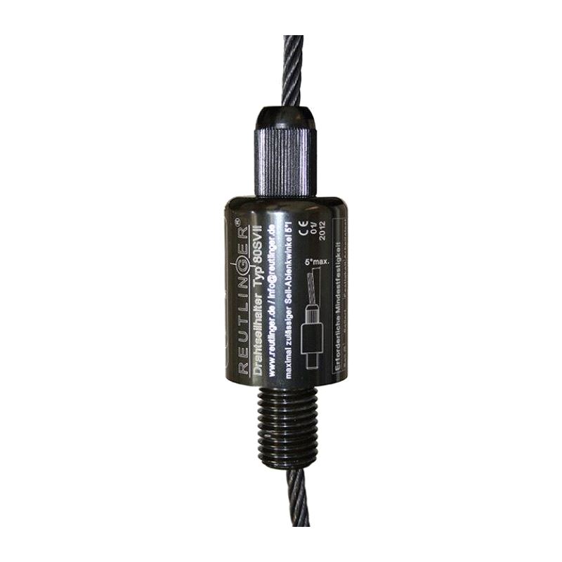 A Type 80SV Reutlinger Cable Holder with an M20 Male thread. Suitable for 6 and 8mm steel wire rope these cable holders have been specifically designed for applications which demand compliance with BGV C1, such as stage productions, fair booths, etc.