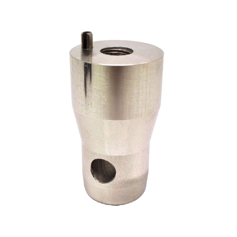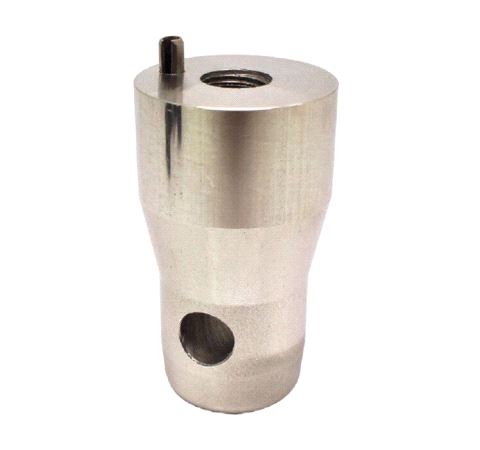 A solid aluminium half connector with an M12 female thread fitted with a roll pin to stop the connector rotating. The roll can be removed to suit certain applications.
