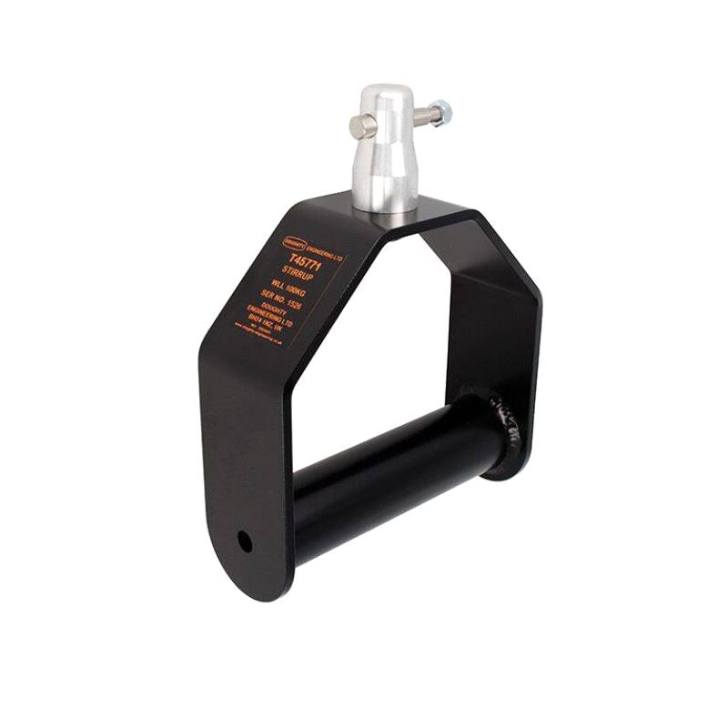 An aluminium Stirrup, ideal for mounting a single luminaire in line with the vertical drop arm.