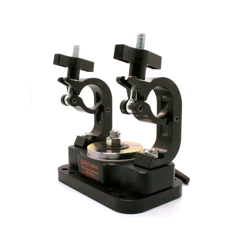 The heavy duty followspot mount is designed to allow a followspot to suspend from a 48mm to 51mm barrel. Ideal for areas where there is no room for a stand but there is a position to rig from above. Using two trigger clamps it allows for 360 degrees of silky smooth rotation and has an easy to use large adjustable lock off knob.
