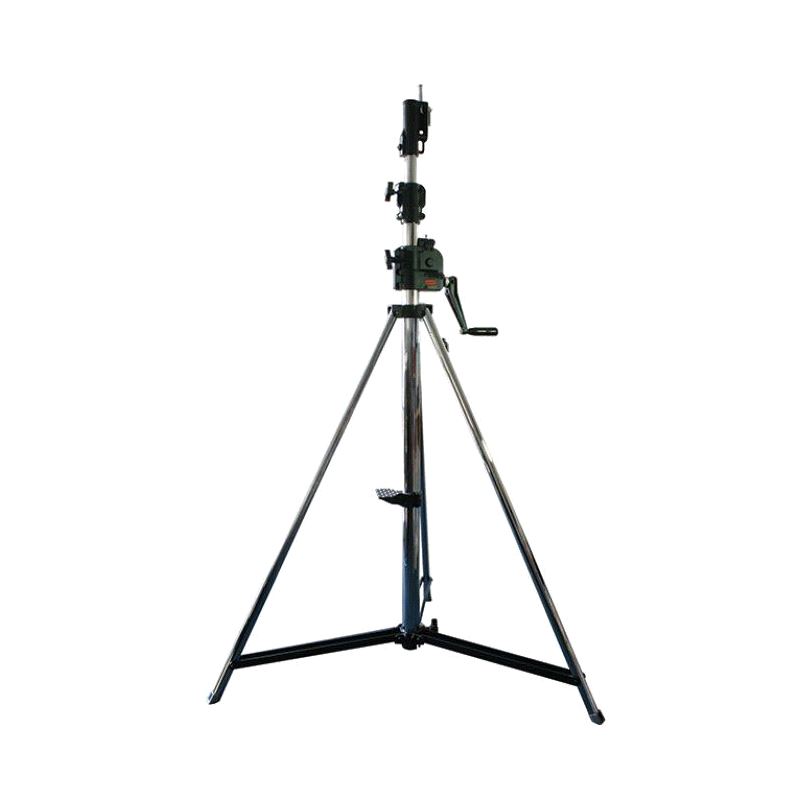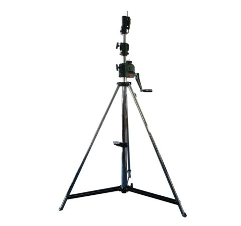 A high specification wind up stand designed specifically to suit the demanding requirements of the entertainment industry. Safety features include a twin cable lifting system, self braking winch and a unique secondary auto lock. These stands have a maximum height of 3.8M and a WLL of 30Kg.