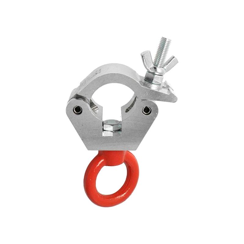The industry standard half coupler factory fitted with an Eye Nut. A high tensile extruded aluminium clamp that is suitable for 48mm to 51mm diameter tubes and is 50mm wide. Ideal for trussing as it will not damage the cords.