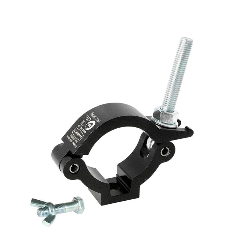 A high tensile extruded slimline aluminium clamp that is suitable for 60mm to 63mm diameter tubes. It has a WLL of 300Kg and is 50mm wide. Slotted to hold captive an M10 or M12 nut or bolt head and supplied with an M10 X 35 bolt and M10 wing nut.
