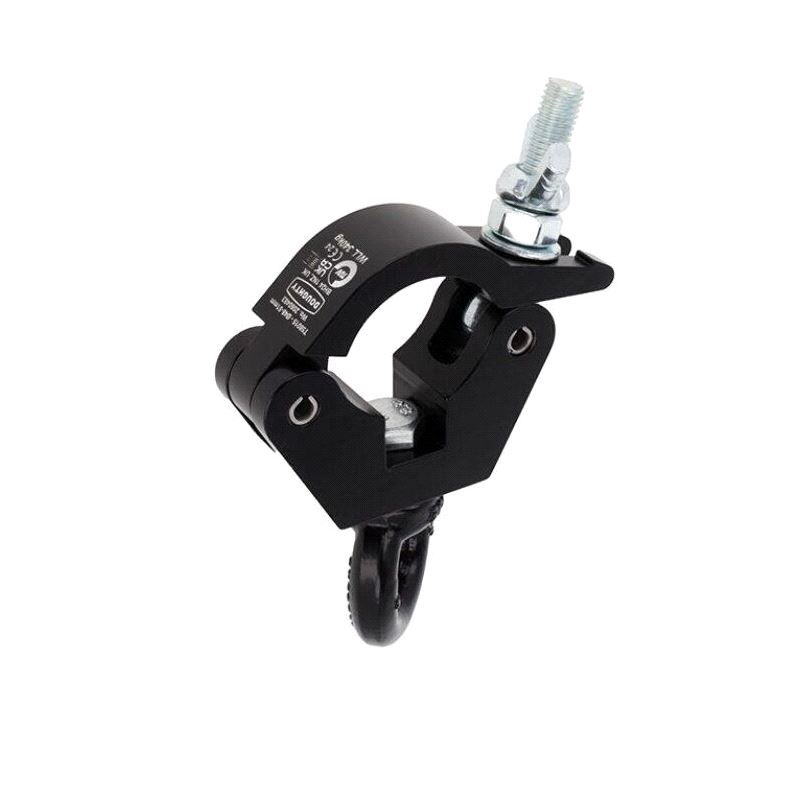 The industry standard slimline half coupler, factory fitted with an Eye Nut. A high tensile extruded aluminium clamp that is suitable for 48mm to 51mm diameter tubes and is 30mm wide. Ideal for trussing as it will not damage the cords.