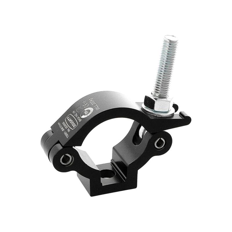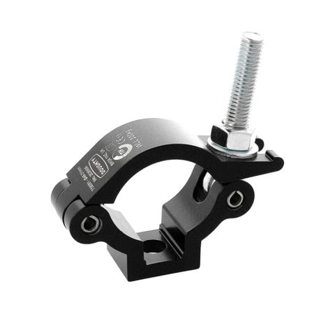 A high tensile extruded aluminium clamp that is suitable for 48mm to 51mm diameter tubes. It has a WLL of 300Kg and is 30mm wide. Slotted to hold captive an M10 or an M12 nut or bolt head. Ideal for trussing as it will not damage the cords.