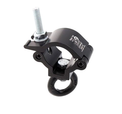 A high tensile extruded aluminium clamp that is suitable for 48mm to 51mm diameter tubes. It has a WLL of 340Kg and is 50mm wide factory fitted with an Eye Nut. Ideal for trussing as it will not damage the cords.