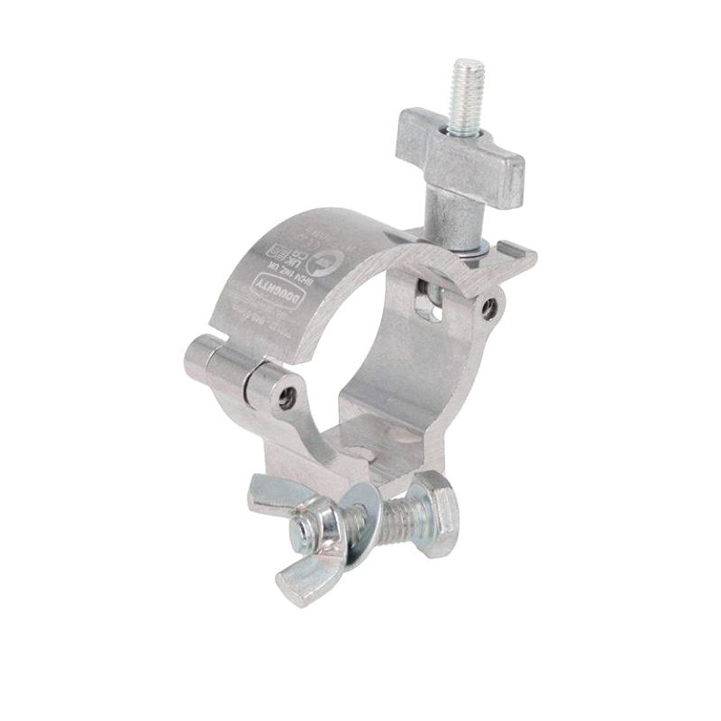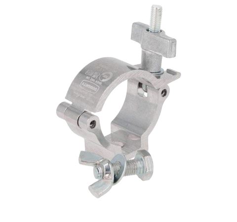 A high tensile extruded aluminium clamp that is suitable for 48mm to 51mm diameter tubes. It has a WLL of 100Kg and is 30mm wide. Slotted to hold captive an M10 nut or bolt head and supplied with an M10 X 30 bolt and wing nut. Ideal for trussing as it will not damage the cords.