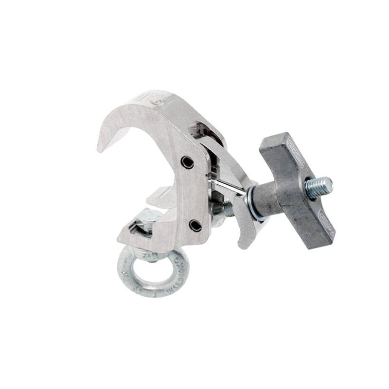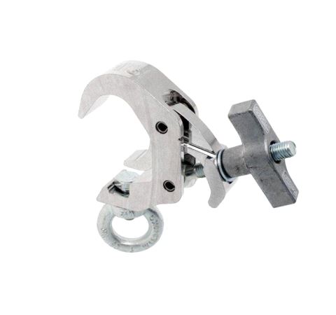 A high tensile extruded aluminium quick trigger clamp that is suitable for 38mm to 51mm diameter tubes. It has a WLL of 100Kg and is 30mm wide, factory fitted with an Eye Nut. Ideal for use with trussing as it will not damage the cords.