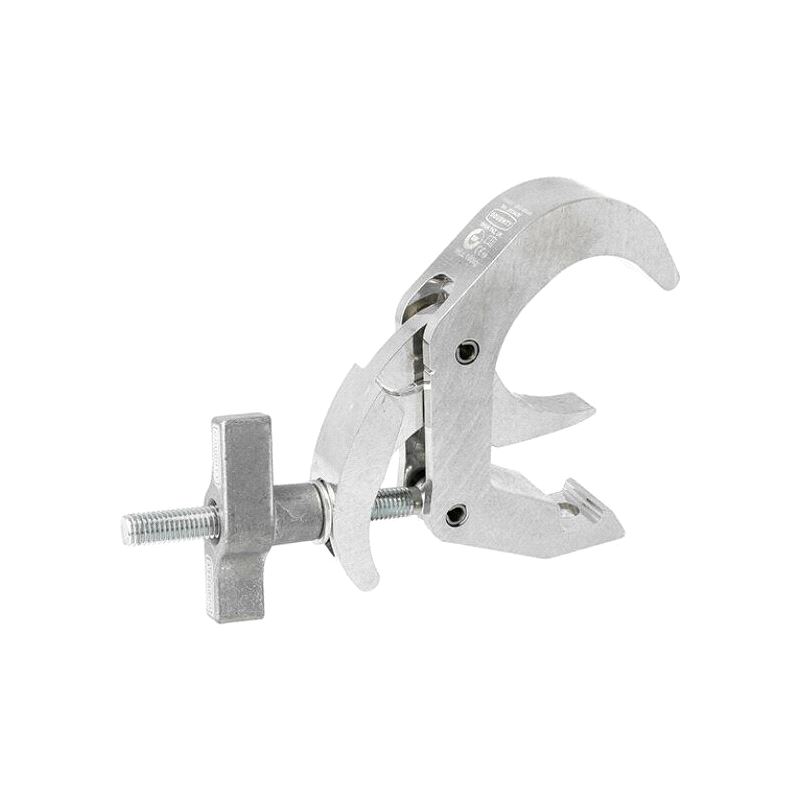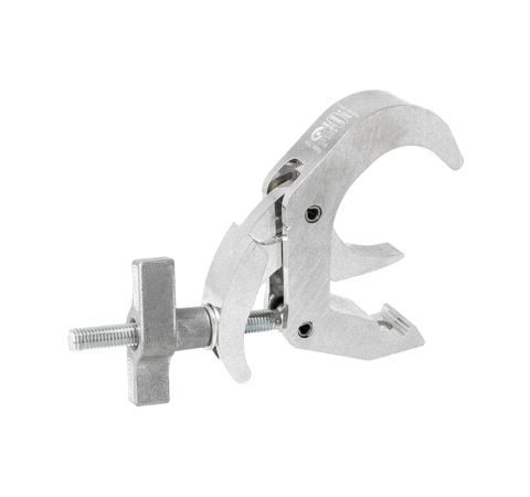 A high tensile extruded aluminium quick trigger clamp that is suitable for 48mm to 80mm diameter tubes. It has a WLL of 100Kg and is 30mm wide. Slotted to hold captive an M10 or M12 nut or bolt head.