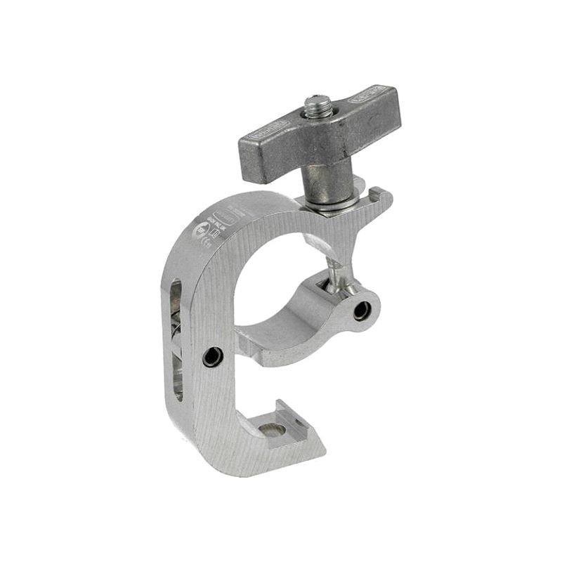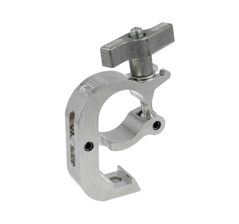 A high tensile extruded aluminium trigger clamp that is suitable for 48mm to 51mm diameter tubes. It has a WLL of 200Kg and is 30mm wide. Slotted to hold captive an M12 nut or bolt head. Ideal for hanging large moving heads on trussing as it will not damage the cords.