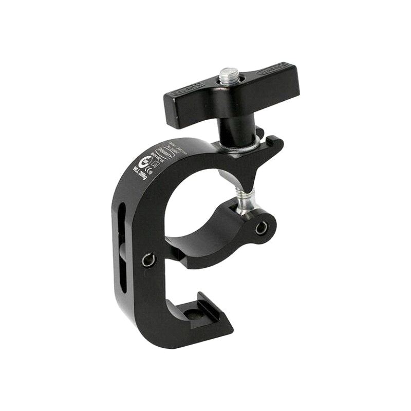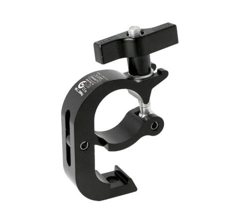 A high tensile extruded aluminium trigger clamp that is suitable for 48mm to 51mm diameter tubes. It has a WLL of 200Kg and is 30mm wide. Slotted to hold captive an M12 nut or bolt head. Ideal for hanging large moving heads on trussing as it will not damage the cords.