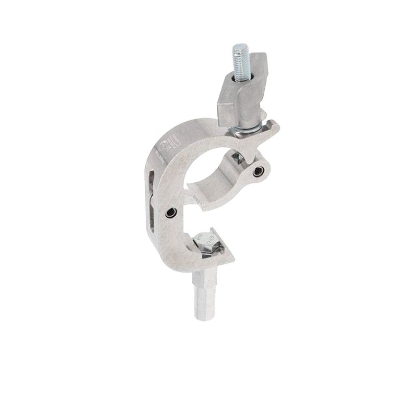 A high tensile extruded aluminium trigger clamp that is suitable for 48mm to 51mm diameter tubes. Has a WLL of 200Kg and is 30mm wide factory fitted with a 19mm diameter spigot. Ideal for hanging large moving heads on trussing as it will not damage the cords.
