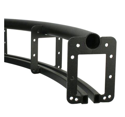 A range of steel 45 degree curved curtain track sections available in various lengths. Six Track is a modular medium duty curtain track that is ideal for use in theatres, arts centres, colleges and schools.