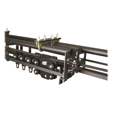A range of overlap line operated track kits that opens from the centre out. Line operated track kits include all the components required to install your chosen track length. A typical kit comprises of track, adjustable support brackets, a nut and bolt set, master runner, runners, pulleys, hauling line, line supports and a weighted hand pulley.