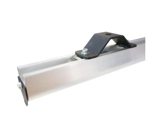 A mild steel top hat bracket secured in place with M6 Unistrut nuts. The 25mm top hat bracket enables Doughty Rail to be fixed with an M10 stud or bolt giving approximately 15mm of height adjustment.
