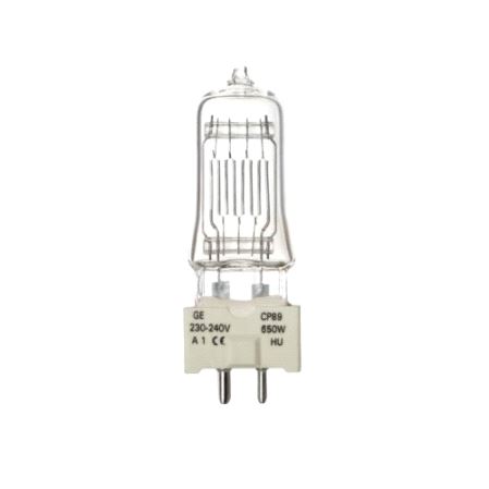Studiolampe for lyskastere med maks 650w effekt og sokkeltype Gy9.5. Fabrikat: G.E. Levetid, 150 timer / fargetemperatur, 3200°K (16.250 lm). Passer bl.a til standard studiolyskastere som profiler og fresneller med oppgitt maks effekt på 650w.
