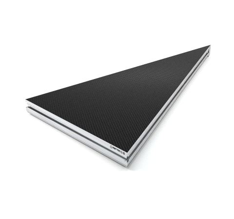 Alu-Rapid podier består av en sterk rammekonstruksjon av aluminium montert rundt plater i beiset bjørkefiner med svart finish, kan også leveres med lys brun finish. Platen er beregnet for innendørs bruk. Denne modellen har en størrelse på 1x1x1.4 meter. Alu-Rapid podier er konstruert for høydevariasjon med stikkbein i faste høyder eller med teleskopbein. Egenvekt på et 1x1x1.4m podie er 19 kg. Alu-Rapid podier benyttes til bygging av scenegulv, stoltribuner og andre større flater. Maks belastning pr. m2 er 750 kg.