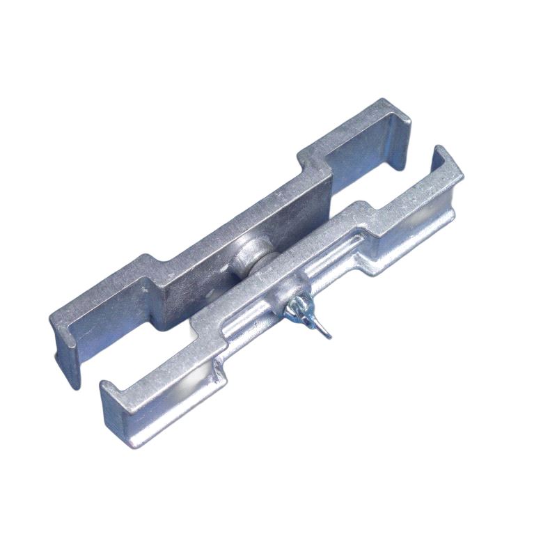 2-beinskobling for sikring mellom to stk stikkbein. Benyttes for økt stabilitet og som ekstra sikring av scenekonstruksjon. Strammes til med stor umbrakonøkkel. Denne typen passer til Alu-Junior modellen.
