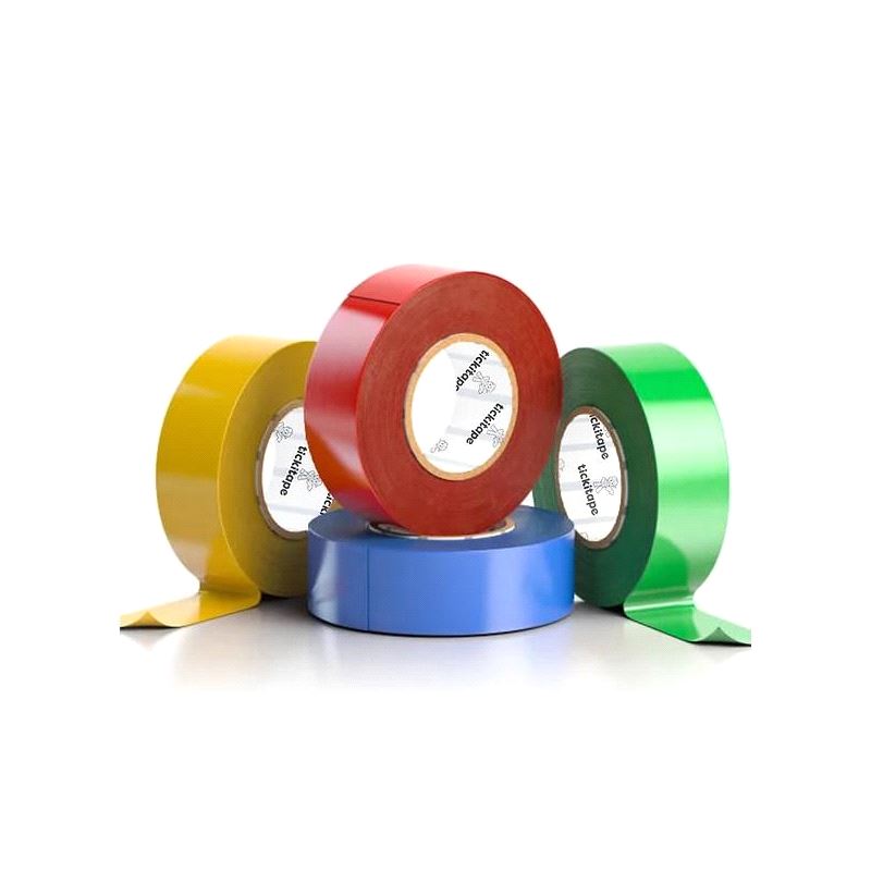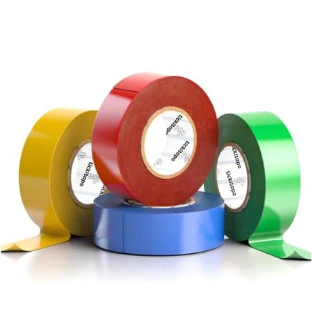 Our PVC electrical insulation tape, BS spec and flame retardant is available in white, black, yellow, red, blue, green, brown, grey and green/yellow stripe, 20m and 33m length, 19mm, 25mm, 30mm, 38mm and 50mm width. Other sizes may be available on request. This tape is flame retardant falling into the self-extinguishing category, it is also complaint with RoHS. This PVC tape has very good electrical properties, tough, flexible and with good conformability. It is used for various applications including wire and cable insulation and colour coding of electrical cables.